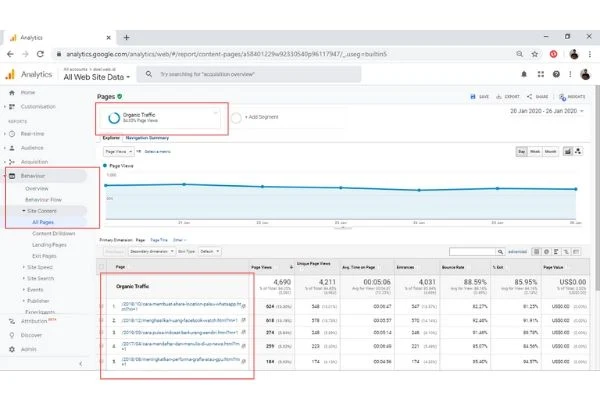 Apabila sudah terpilih tampilan organik, maka Anda bisa melihat daftar artikel yang paling banyak dikunjungi melalui Google Search. Silakan pilih yang menurut Anda paling perlu untuk dilakukan update. Kalau semuanya perlu ya silakan di-update semuanya.